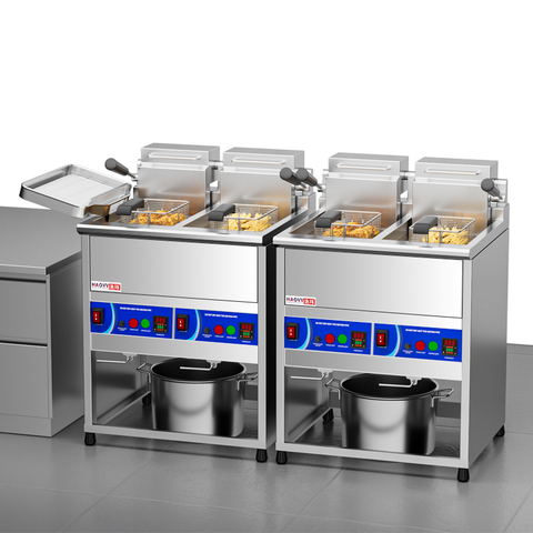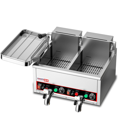 مقلاة زيت كهربائية تعمل بخزان مزدوج تجاري 20 لتر + 20 لتر ، معدات من الفولاذ المقاوم للصدأ