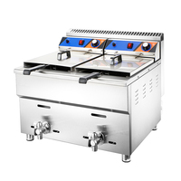 مقلاة غاز تجارية أعلى الطاولة من الفولاذ المقاوم للصدأ ، مقلاة مكدونالدز عميقة 18L + 18L 2 خزان 2 سلة غاز ، مقلاة عميقة