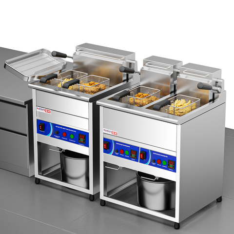 قلايات كهربائية عالية الجودة صغيرة سعة 17 لتر بخزان واحد وسلال مزدوجة مقلاة بطاطس دجاج من الفولاذ المقاوم للصدأ
